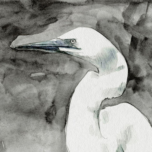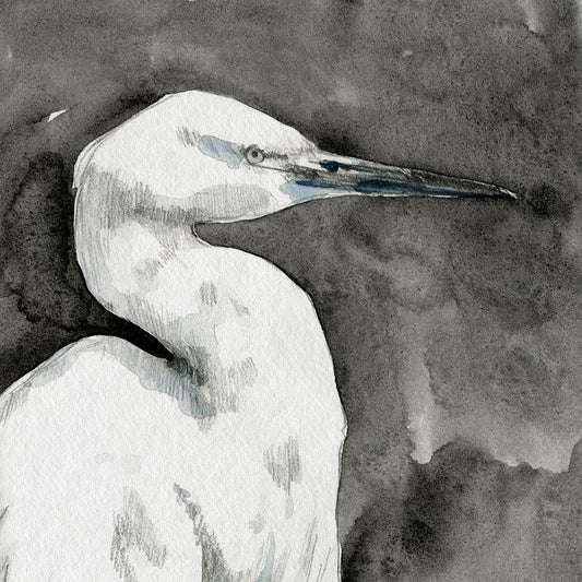 Solemn Egret I White Modern Wood Framed Art Print with Double Matting by Caroline, Emma