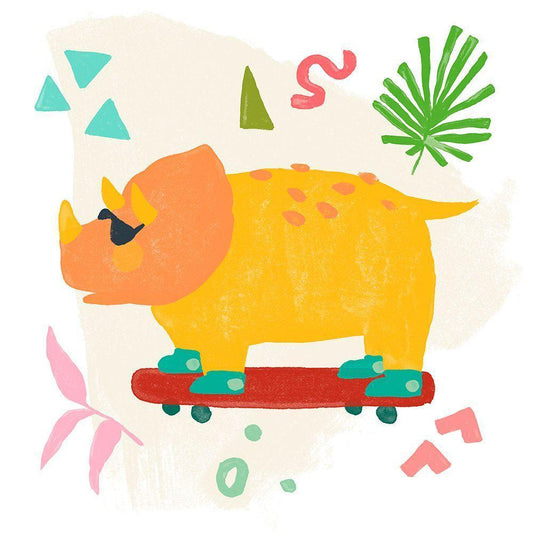 Rollin Dino I White Modern Wood Framed Art Print with Double Matting by Vess, June Erica