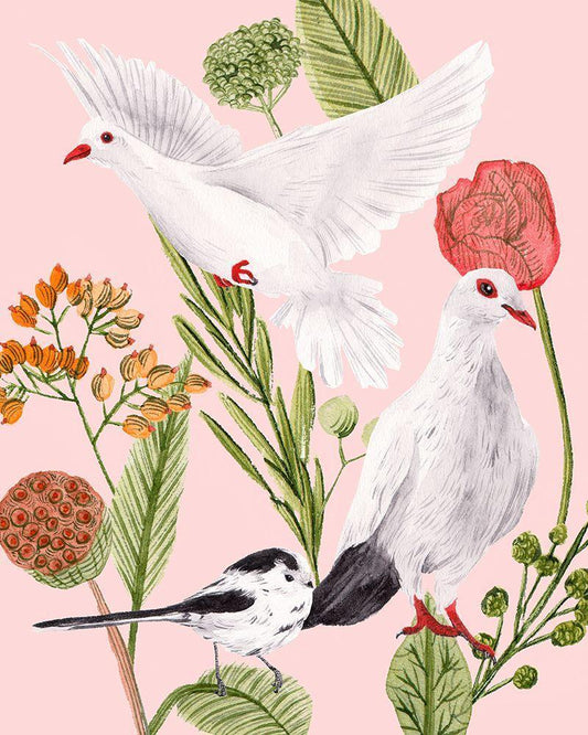 Birds in Motion I White Modern Wood Framed Art Print with Double Matting by Wang, Melissa