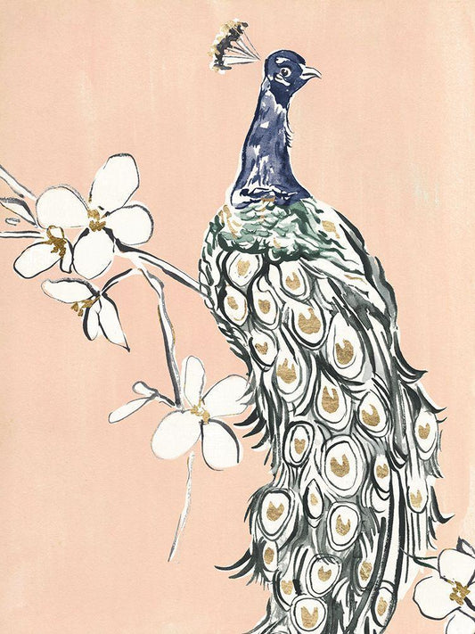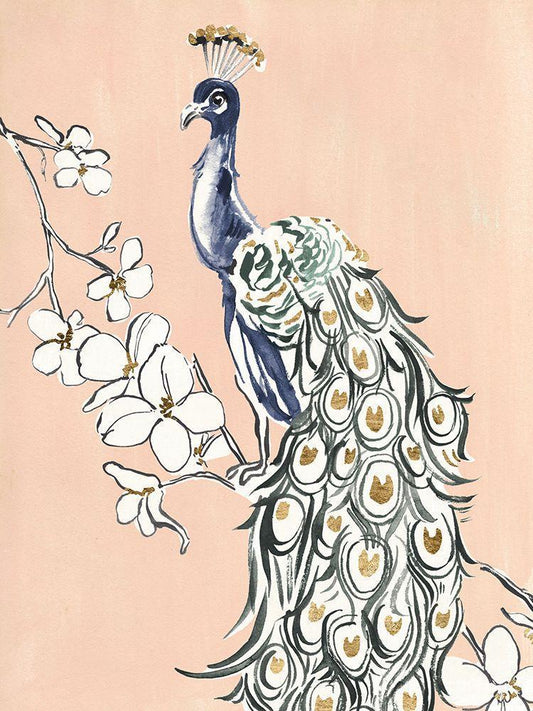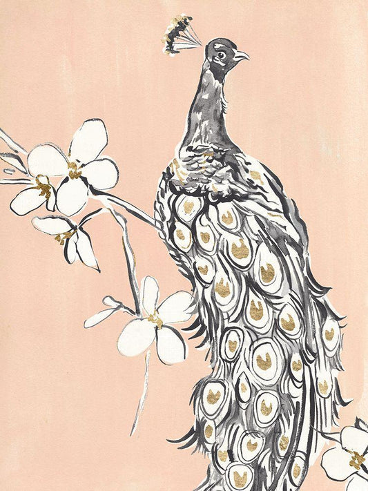 Peacock in Gold I White Modern Wood Framed Art Print with Double Matting by Warren, Annie