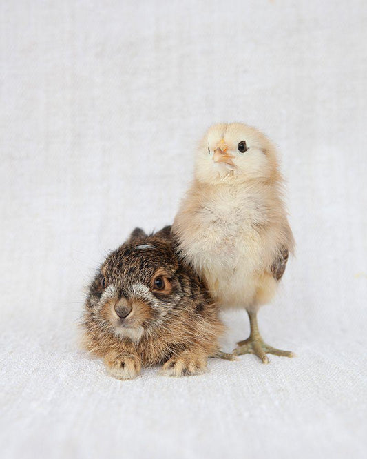 Chick And Baby Rabbit White Modern Wood Framed Art Print with Double Matting by Soderman, Tania