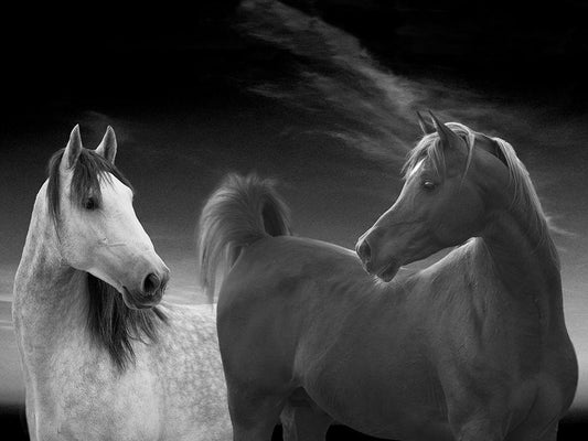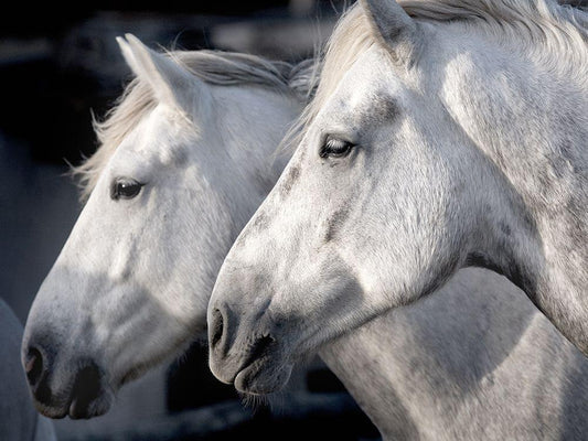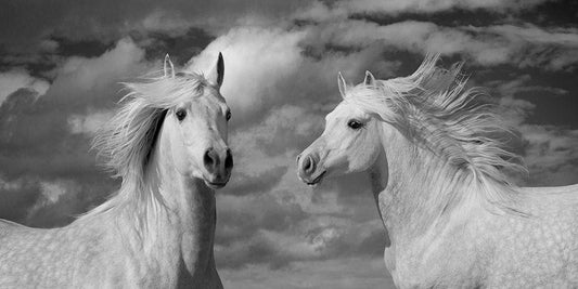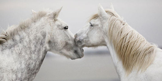 Horse Meeting White Modern Wood Framed Art Print with Double Matting by Llovet, Jorge