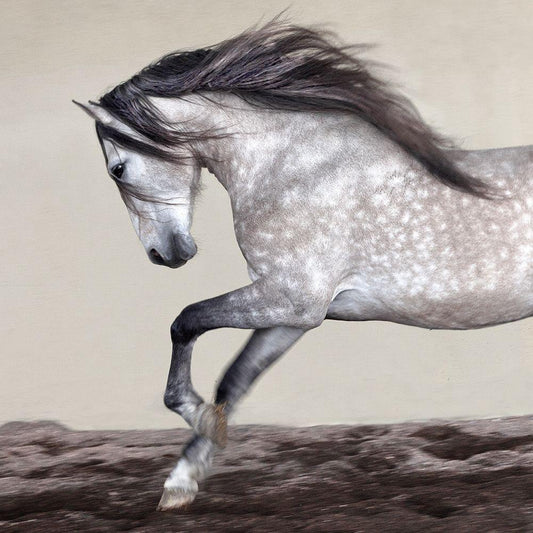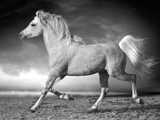 Horses Running at the Beach White Modern Wood Framed Art Print with Double Matting by Llovet, Jorge