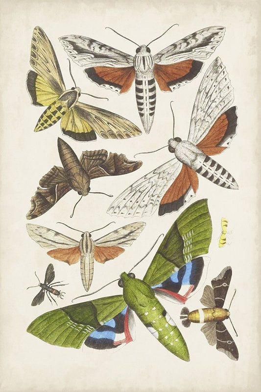 Antique Moths I White Modern Wood Framed Art Print with Double Matting by Unknown
