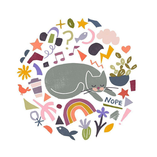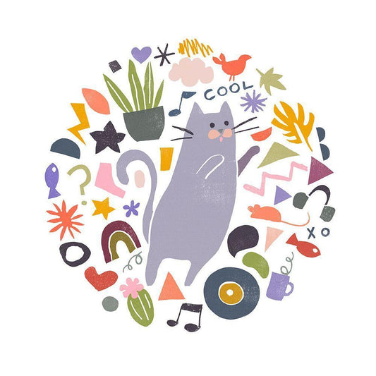 Kaleidoscope Comfy Cat White Modern Wood Framed Art Print with Double Matting by Vitaletti, Carolee