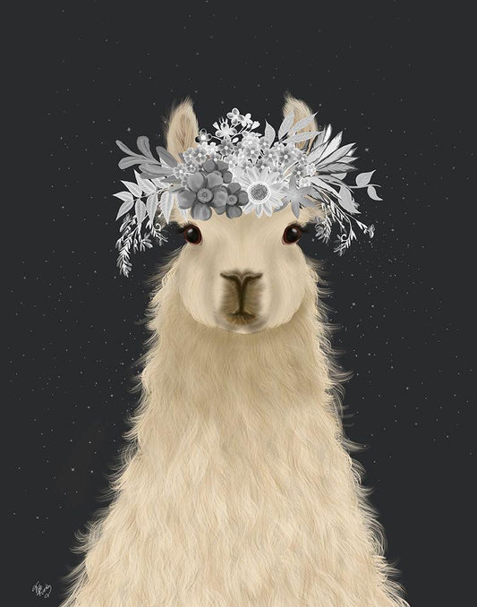 Llama White Flowers White Modern Wood Framed Art Print with Double Matting by Fab Funky