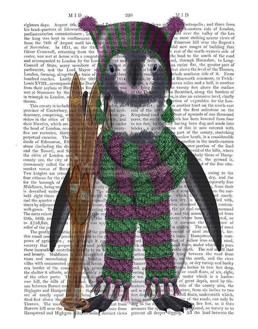 Penguin Skis Book Print White Modern Wood Framed Art Print with Double Matting by Fab Funky