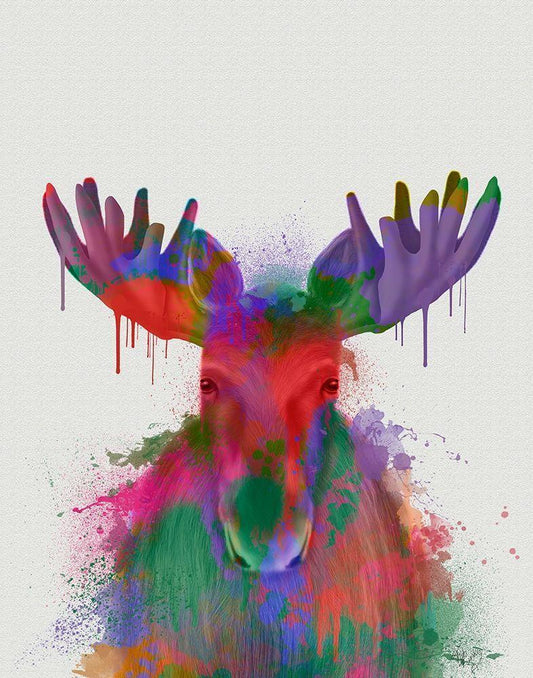 Moose Rainbow Splash White Modern Wood Framed Art Print with Double Matting by Fab Funky