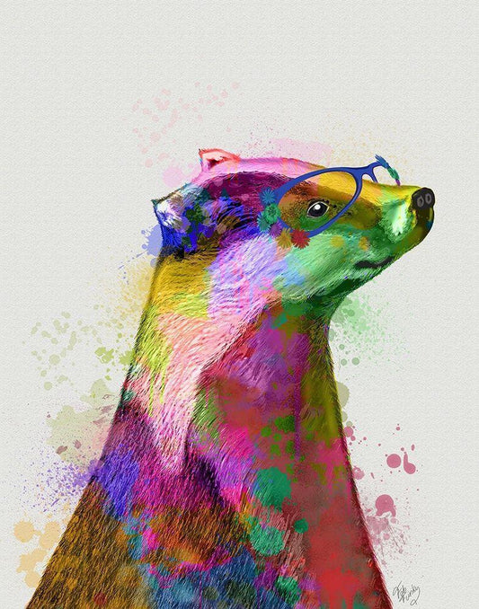 Badger Rainbow Splash 2 White Modern Wood Framed Art Print with Double Matting by Fab Funky