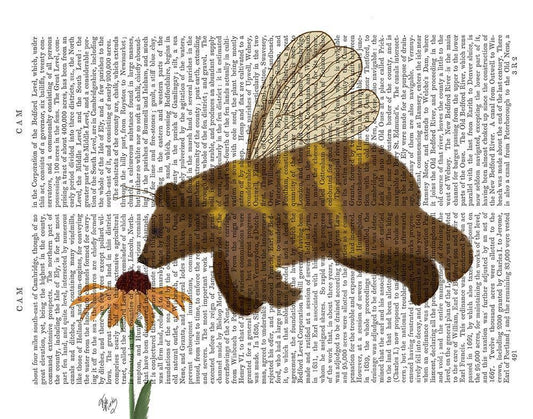 Bear Bee Book Print White Modern Wood Framed Art Print with Double Matting by Fab Funky
