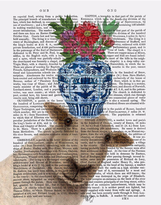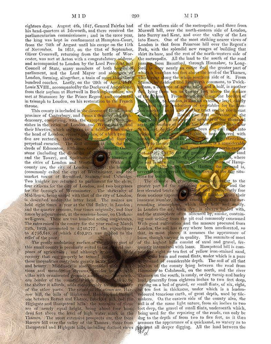 Sheep with Vase of Flowers Book Print White Modern Wood Framed Art Print with Double Matting by Fab Funky