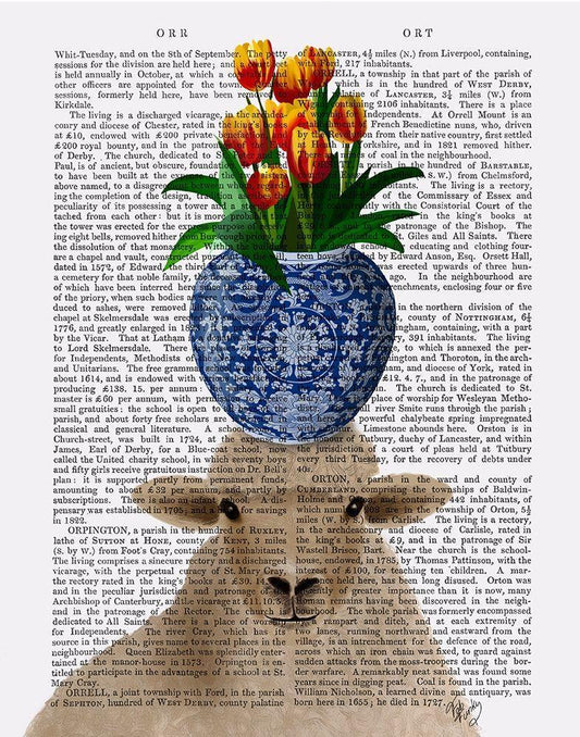 Sheep and Tulips Book Print White Modern Wood Framed Art Print with Double Matting by Fab Funky