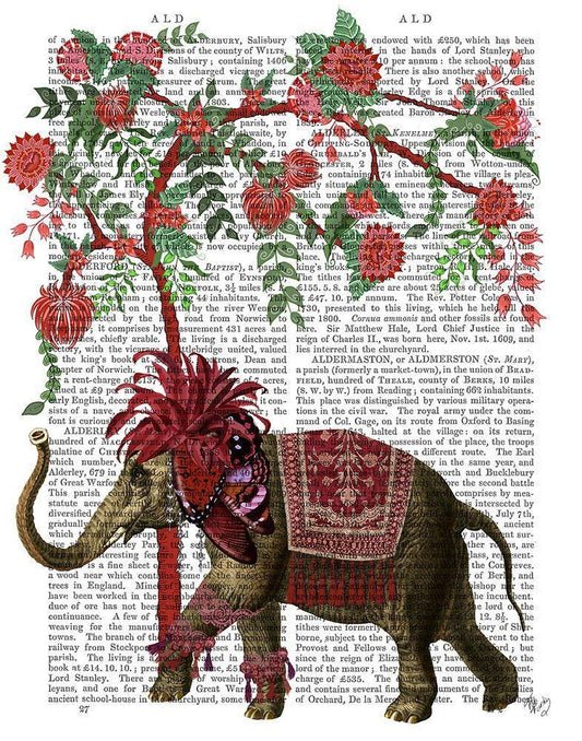 Niraj Elephant, Red Tree White Modern Wood Framed Art Print with Double Matting by Fab Funky