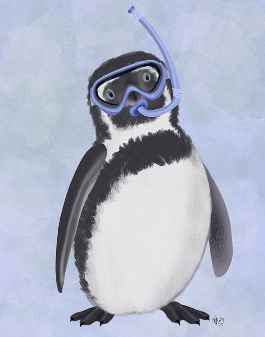 Penguin Snorkel White Modern Wood Framed Art Print with Double Matting by Fab Funky