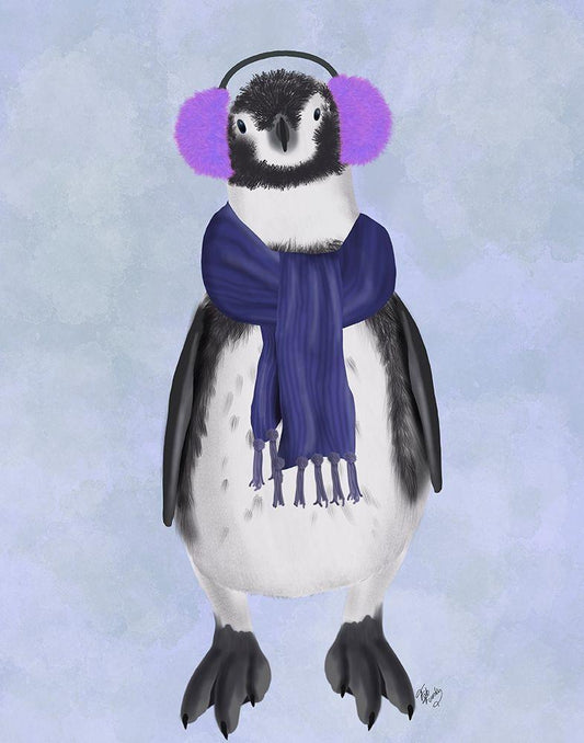 Penguin Ear Muffs White Modern Wood Framed Art Print with Double Matting by Fab Funky