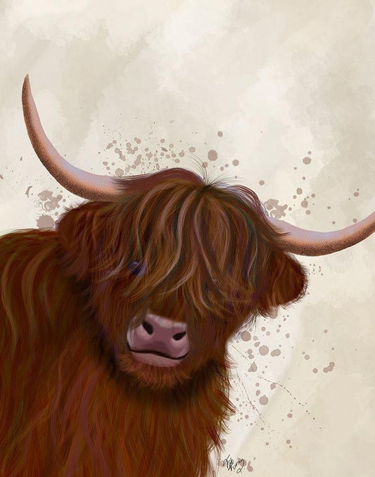 Highland Cow 2, Portrait White Modern Wood Framed Art Print with Double Matting by Fab Funky