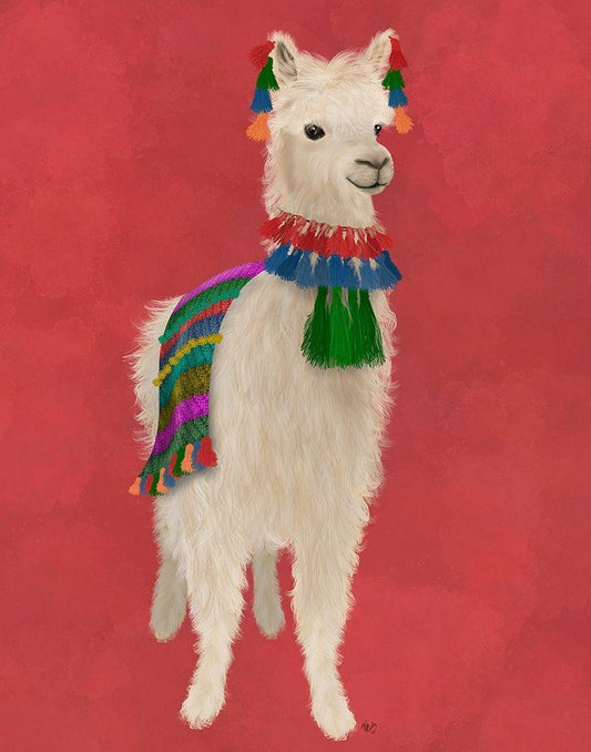 Llama Traditional 2, Portrait Book Print White Modern Wood Framed Art Print with Double Matting by Fab Funky