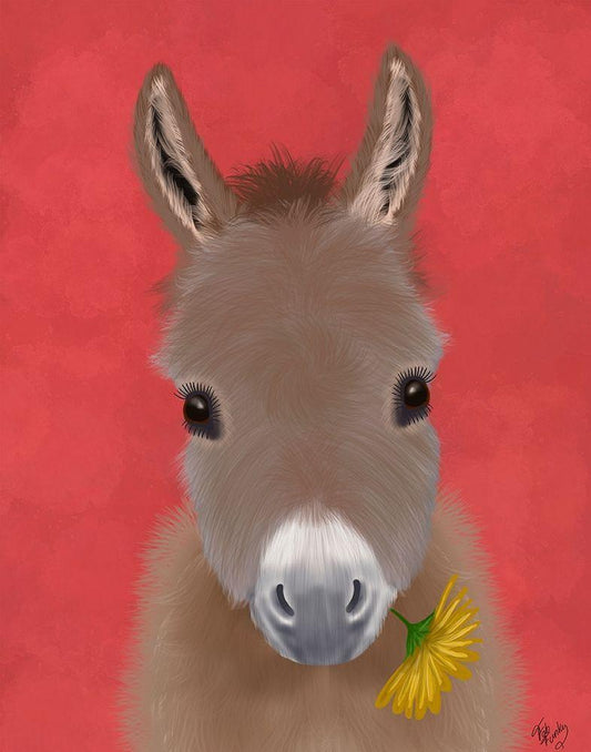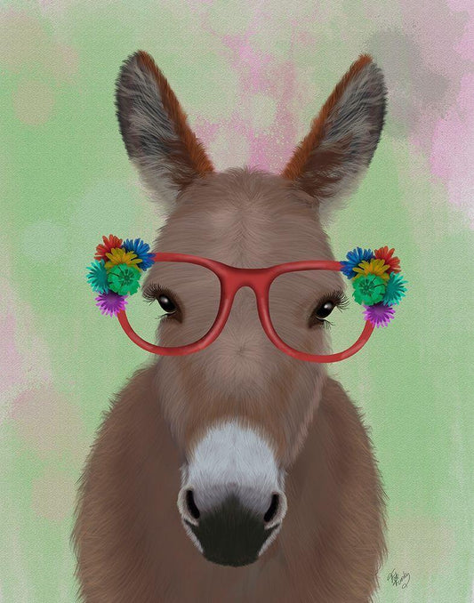 Donkey Red Flower Glasses White Modern Wood Framed Art Print with Double Matting by Fab Funky