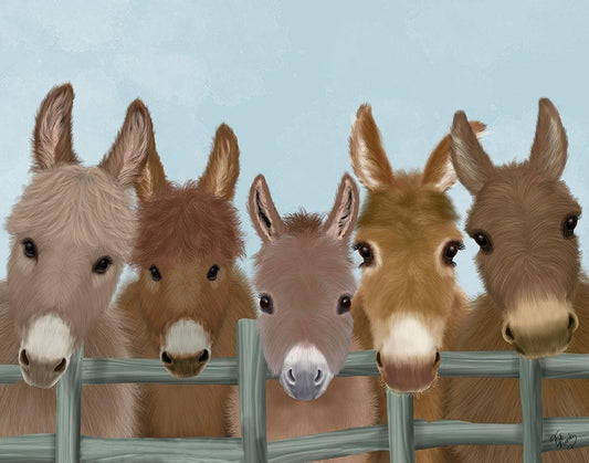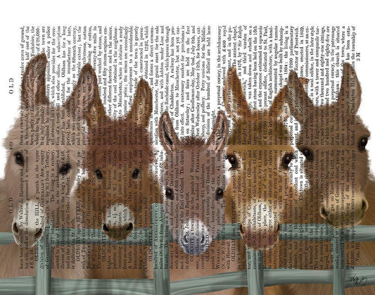 Donkey Herd at Fence Book Print White Modern Wood Framed Art Print with Double Matting by Fab Funky