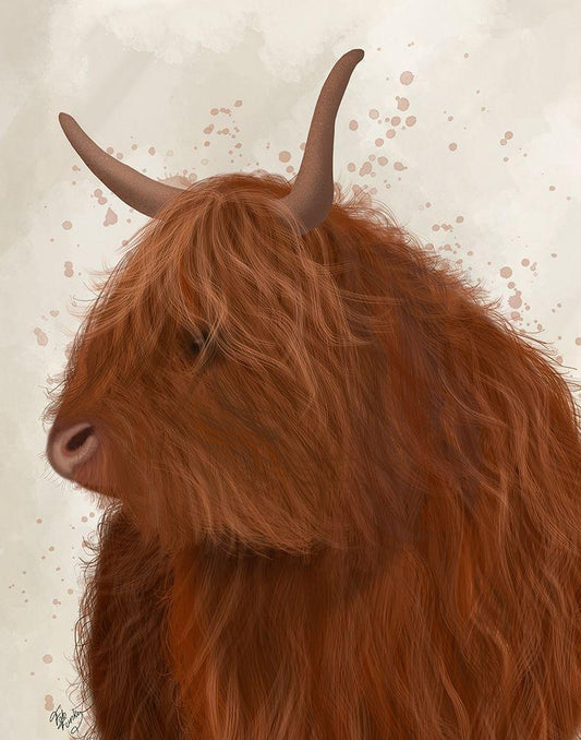 Highland Cow 4, Portrait White Modern Wood Framed Art Print with Double Matting by Fab Funky