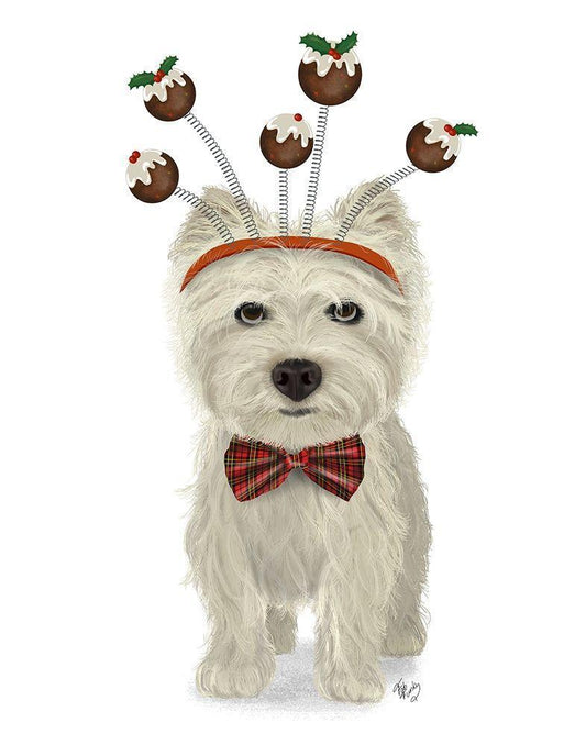 Christmas Des - Westie and Christmas Puds White Modern Wood Framed Art Print with Double Matting by Fab Funky