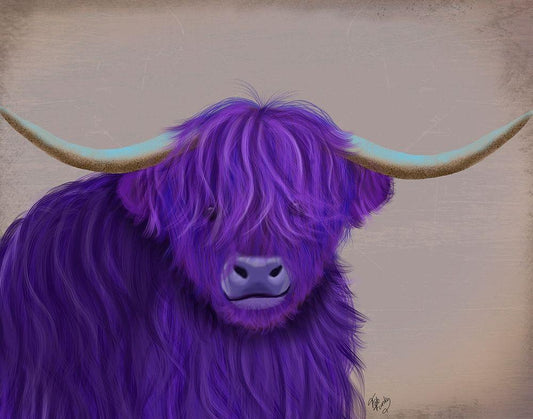 Highland Cow 5, Purple, Portrait White Modern Wood Framed Art Print with Double Matting by Fab Funky