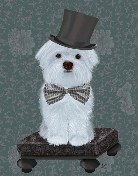 Maltese with Top Hat White Modern Wood Framed Art Print with Double Matting by Fab Funky