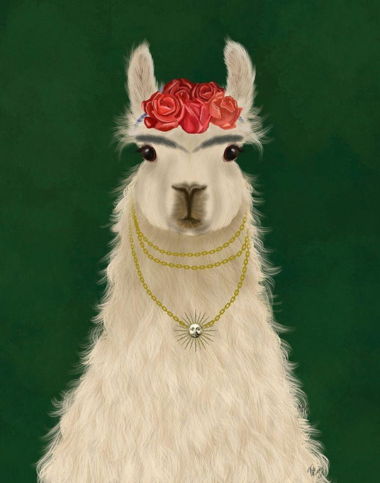 Llama F White Modern Wood Framed Art Print with Double Matting by Fab Funky