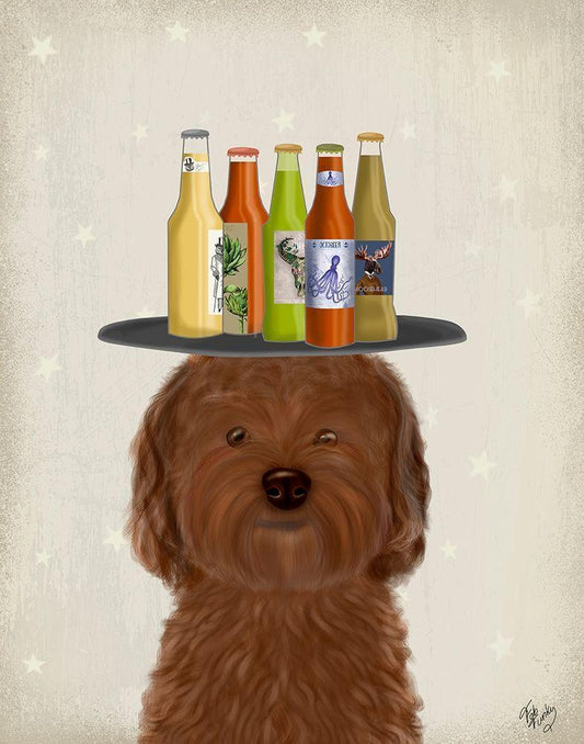 Labradoodle Brown Beer Lover White Modern Wood Framed Art Print with Double Matting by Fab Funky