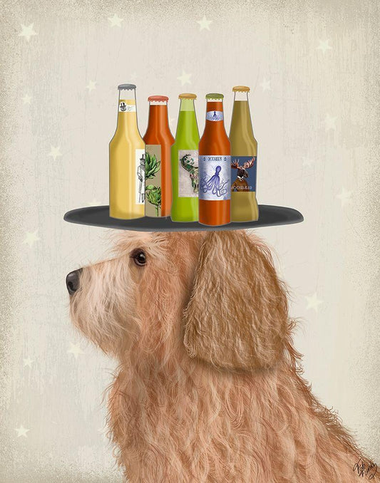 Labradoodle Gold 2 Beer Lover White Modern Wood Framed Art Print with Double Matting by Fab Funky
