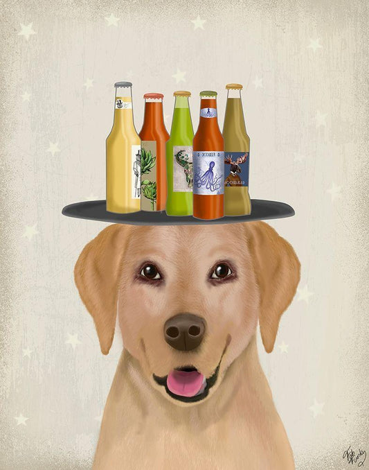Labrador Yellow Beer Lover White Modern Wood Framed Art Print with Double Matting by Fab Funky