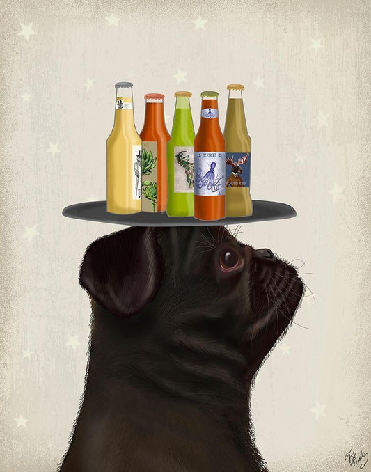 Pug Black Beer Lover White Modern Wood Framed Art Print with Double Matting by Fab Funky