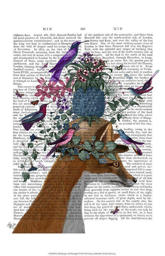 Fox Birdkeeper with Pineapple White Modern Wood Framed Art Print with Double Matting by Fab Funky