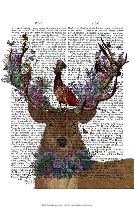 Deer Birdkeeper, Scotish White Modern Wood Framed Art Print with Double Matting by Fab Funky