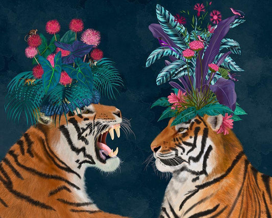 Hot House Tigers, Pair, Dark White Modern Wood Framed Art Print with Double Matting by Fab Funky