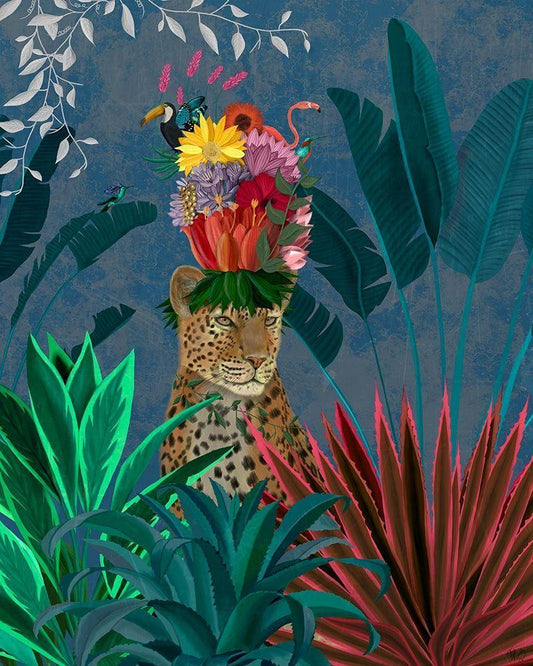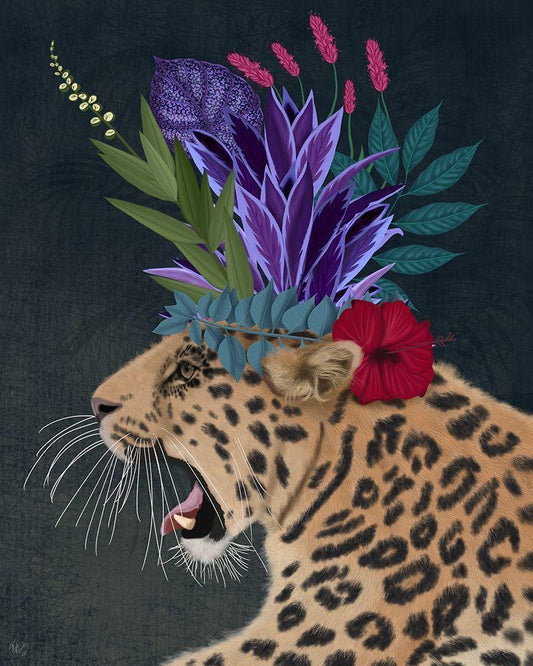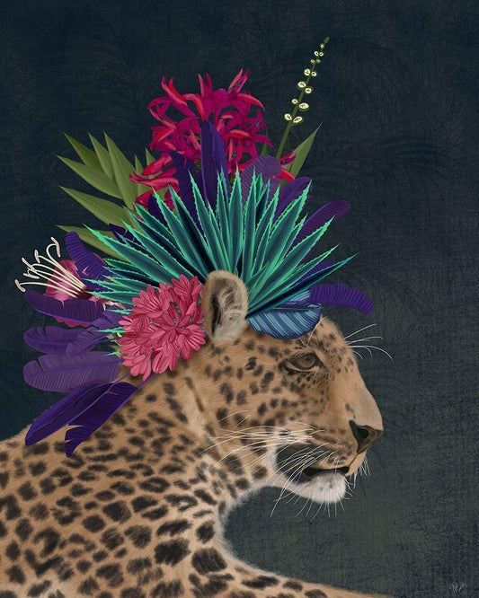 Leopard with Headdress White Modern Wood Framed Art Print with Double Matting by Fab Funky