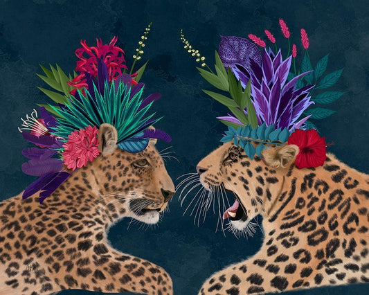 Hot House Leopards, Pair, Dark White Modern Wood Framed Art Print with Double Matting by Fab Funky