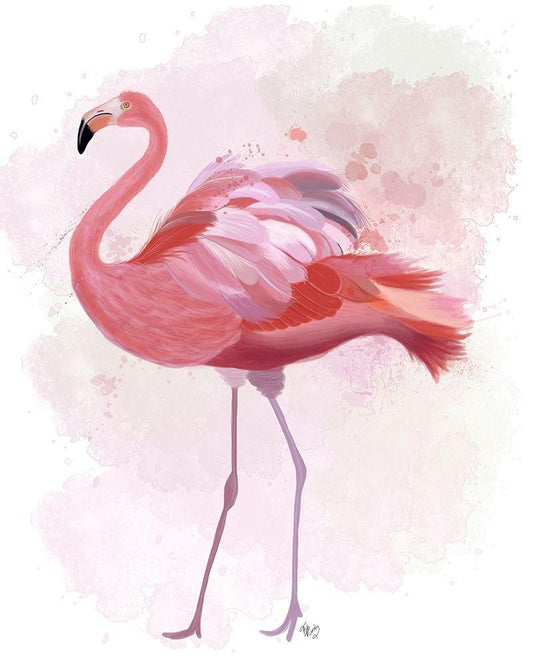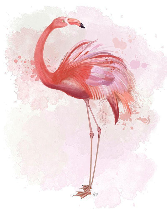 Fluffy Flamingo 1 White Modern Wood Framed Art Print with Double Matting by Fab Funky