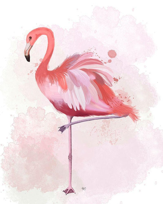 Fluffy Flamingo 4 White Modern Wood Framed Art Print with Double Matting by Fab Funky
