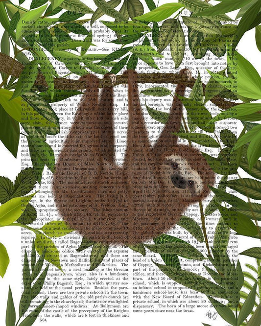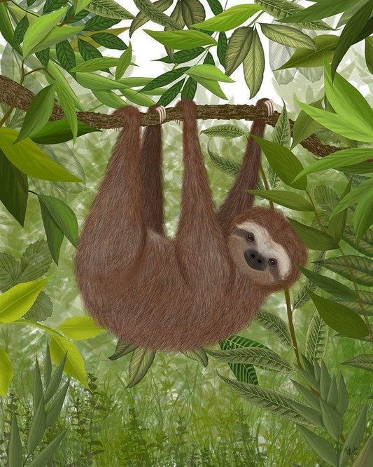 Sloth Hanging Around White Modern Wood Framed Art Print with Double Matting by Fab Funky