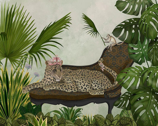 Leopard Chaise Longue White Modern Wood Framed Art Print with Double Matting by Fab Funky