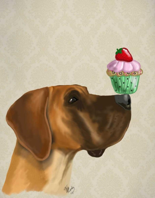 Great Dane and Cupcake White Modern Wood Framed Art Print with Double Matting by Fab Funky