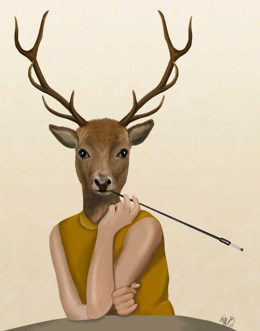 Bloodhound Sherlock Holmes White Modern Wood Framed Art Print with Double Matting by Fab Funky