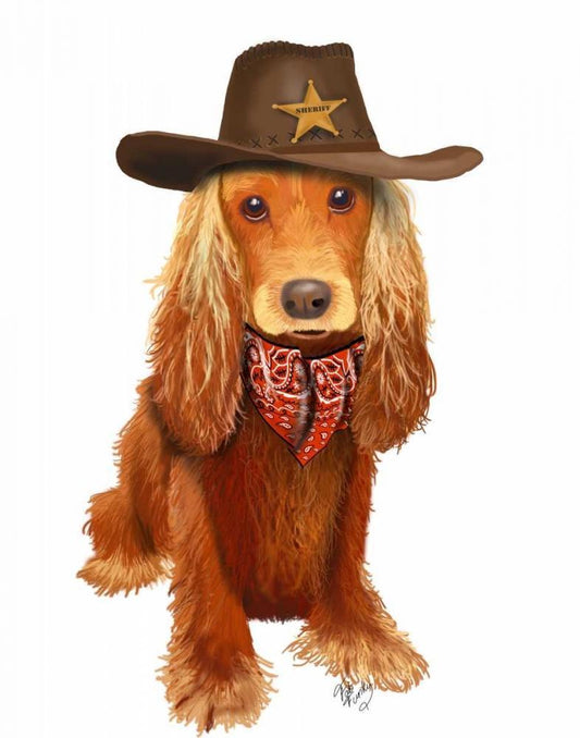 Cocker Spaniel Cowboy White Modern Wood Framed Art Print with Double Matting by Fab Funky