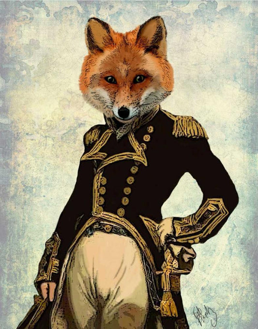 Admiral Fox Full White Modern Wood Framed Art Print with Double Matting by Fab Funky