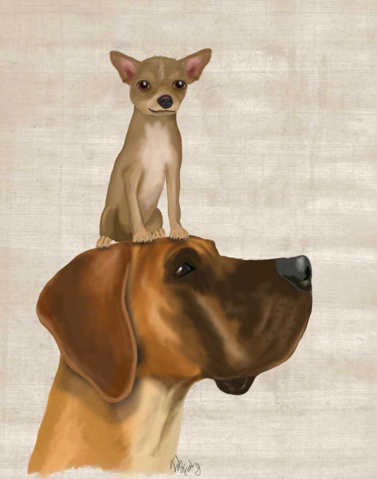 Great Dane and Chihuahua White Modern Wood Framed Art Print with Double Matting by Fab Funky