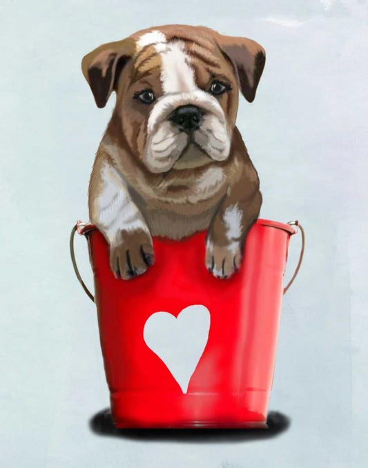 Bulldog Bucket Of Love Red White Modern Wood Framed Art Print with Double Matting by Fab Funky