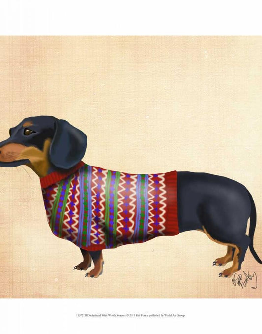 Dachshund With Woolly Sweater White Modern Wood Framed Art Print with Double Matting by Fab Funky