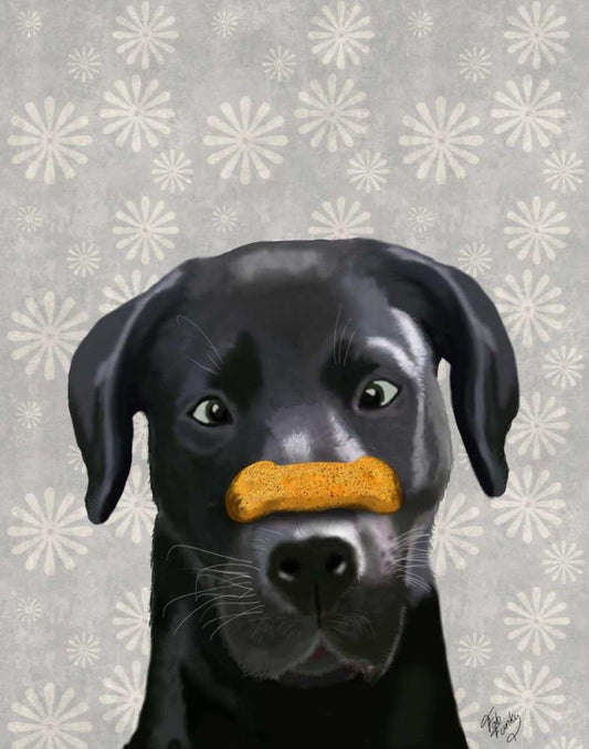 Black Labrador With Bone on Nose White Modern Wood Framed Art Print with Double Matting by Fab Funky