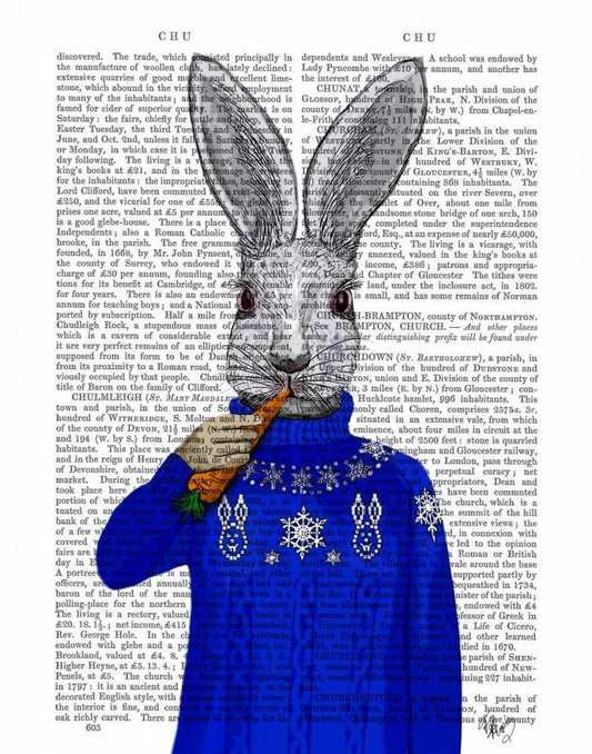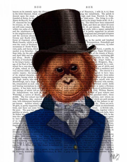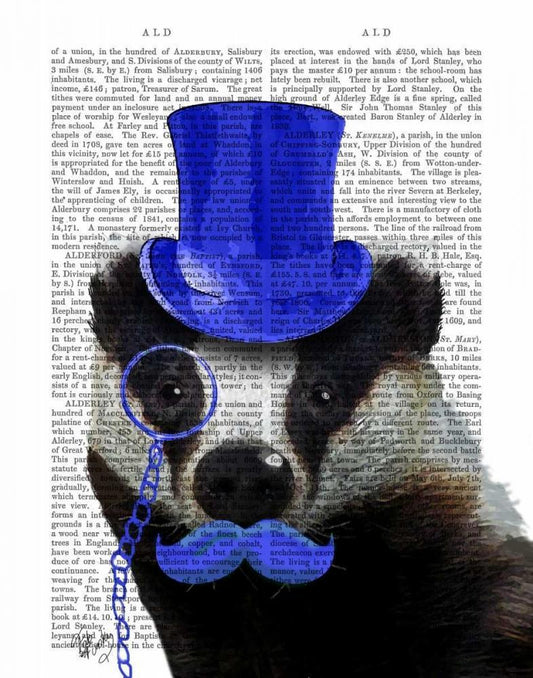Badger with Blue Top Hat and Moustache White Modern Wood Framed Art Print with Double Matting by Fab Funky